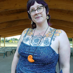 Each pendant measures about 2.3" wide, 1.8" tall, .5" thick in the area between the cords, and .6" thick at the end of the spiral - a great option for chewing with your front teeth. Use this seashell necklace as a safe alternative to chewing on pencils, shirts, fingers, etc. and to help calm, focus, and self-regulate.