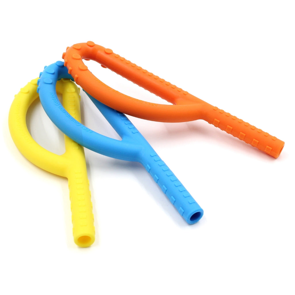 *Caution: This product is not a toy.  Although these chew tools are sturdy and durable, no chew tool is indestructible.  Wear/tear may be expected given the nature of the intended use.  How long they last is typically equal to the amount and intensity of the chewing, as well as other variables (such as jaw strength, stress/anxiety levels, if other sensory strategies are in place, etc.).  While for some people a chew tool will last forever, for others with heavy/aggressive oral needs, they may go through it very quickly.  Please supervise at all times, regularly inspect the chew, and replace if necessary if the item shows signs of wear and tear.
