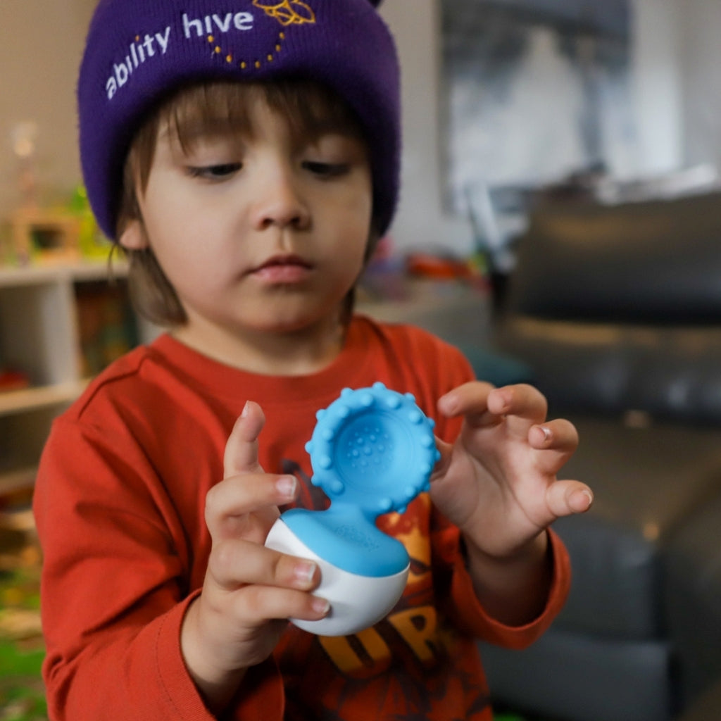 Whether for teething, fidgeting, or sensory play, the Dimpl Wobbl in calming blue is a versatile tool for sensory learning and self-regulation.