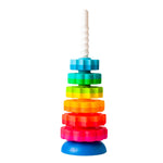 Stack the discs in size order, mix up the colours, or explore new patterns—it’s a toy that encourages creativity and experimentation. Even the smallest disc spins effortlessly down the corkscrew pole, providing a satisfying sensory experience with every play session.