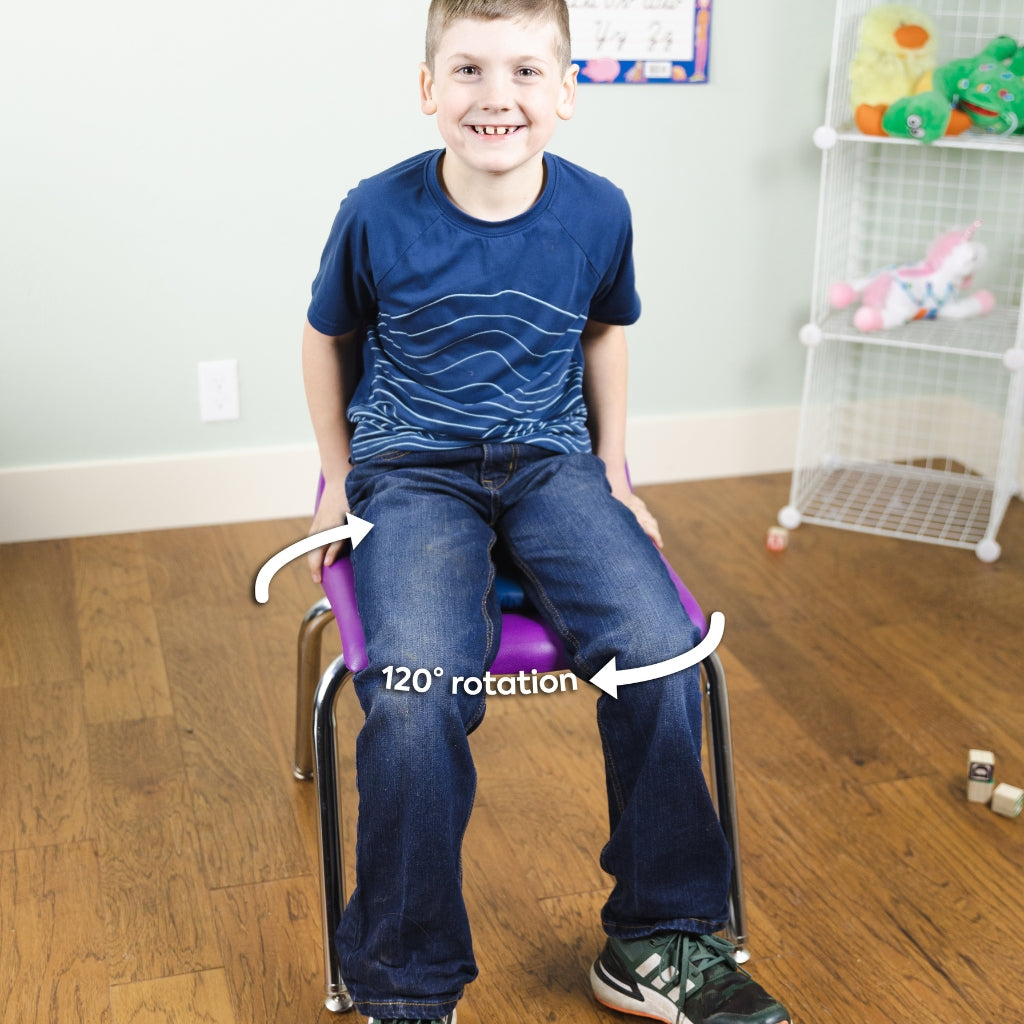 • ACTIVE SEATING: Patent pending 120-degree rotating pivot disc spins smoothly like a "Lazy Susan" enabling children to silently twist and turn