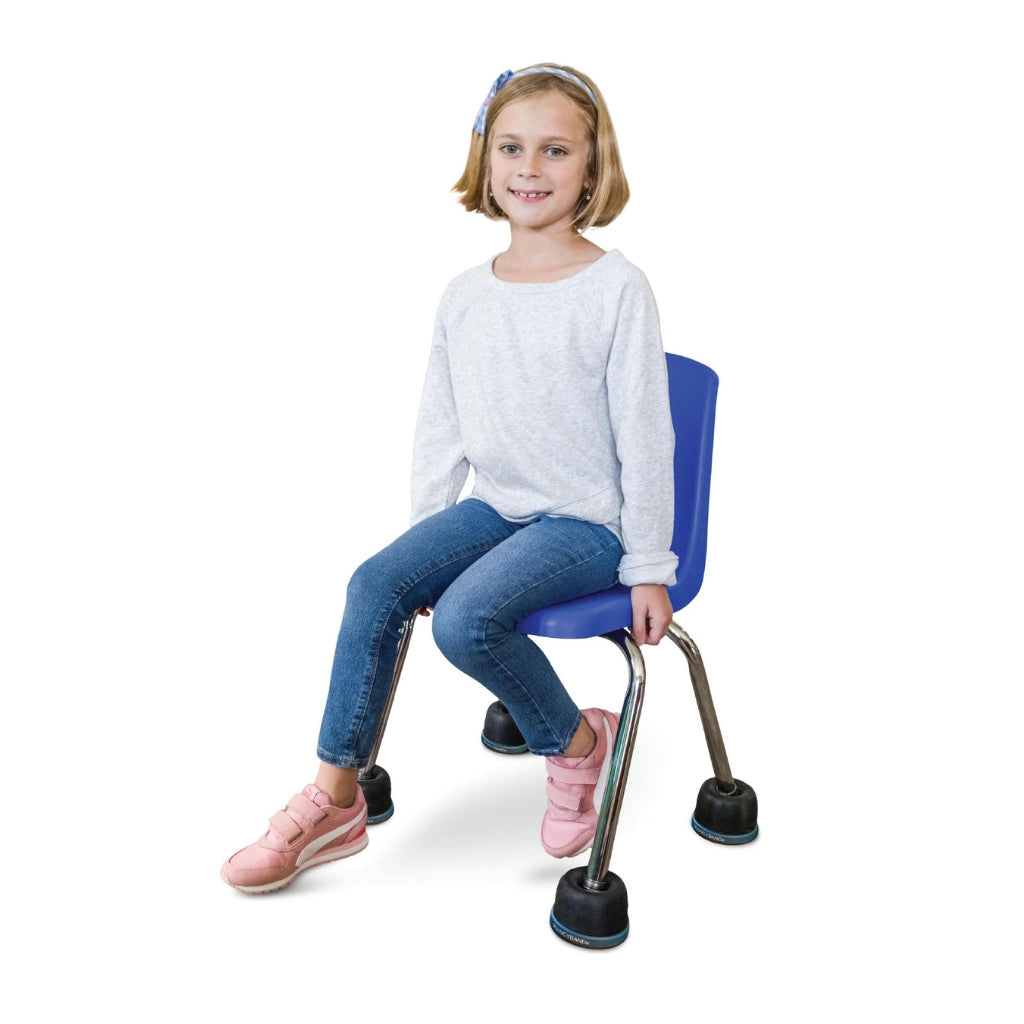 The Wiggle Wobble Chair Feet transform a standard school chair into a Wobble Chair, enabling kids to have an outlet for excess energy while working, alleviating anxiety, hyperactivity, and boredom.