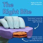 Étant donné qu'une seule partie de la nourriture est présentée à la fois, Right Bite encourage des bouchées de taille appropriée, évite le bourrage de la bouche et rythme le rythme de l'alimentation pour permettre un temps de mastication adéquat. Pour le classement et le contrôle de la mâchoire, utilisez des aliments de différentes épaisseurs et entraînez-vous à évaluer jusqu'où ouvrir la bouche pour chaque aliment. Quel que soit votre objectif, Right Bite élimine le risque que le thérapeute/soignant soit mordu pendant la thérapie alimentaire. De plus, le fait de se voir proposer une bouchée prescrite diminue les préoccupations visuelles et sensorielles que certaines personnes peuvent avoir avec de gros morceaux de nourriture. L’outil thérapeutique Right Bite est recommandé aux personnes de tous âges. Mesure environ 4 x 2 pouces avec une ouverture de morsure de 1,4 x 0,6 pouces. Lave-vaisselle.
