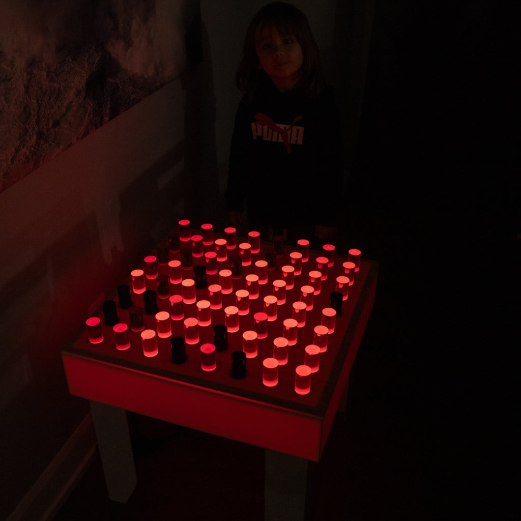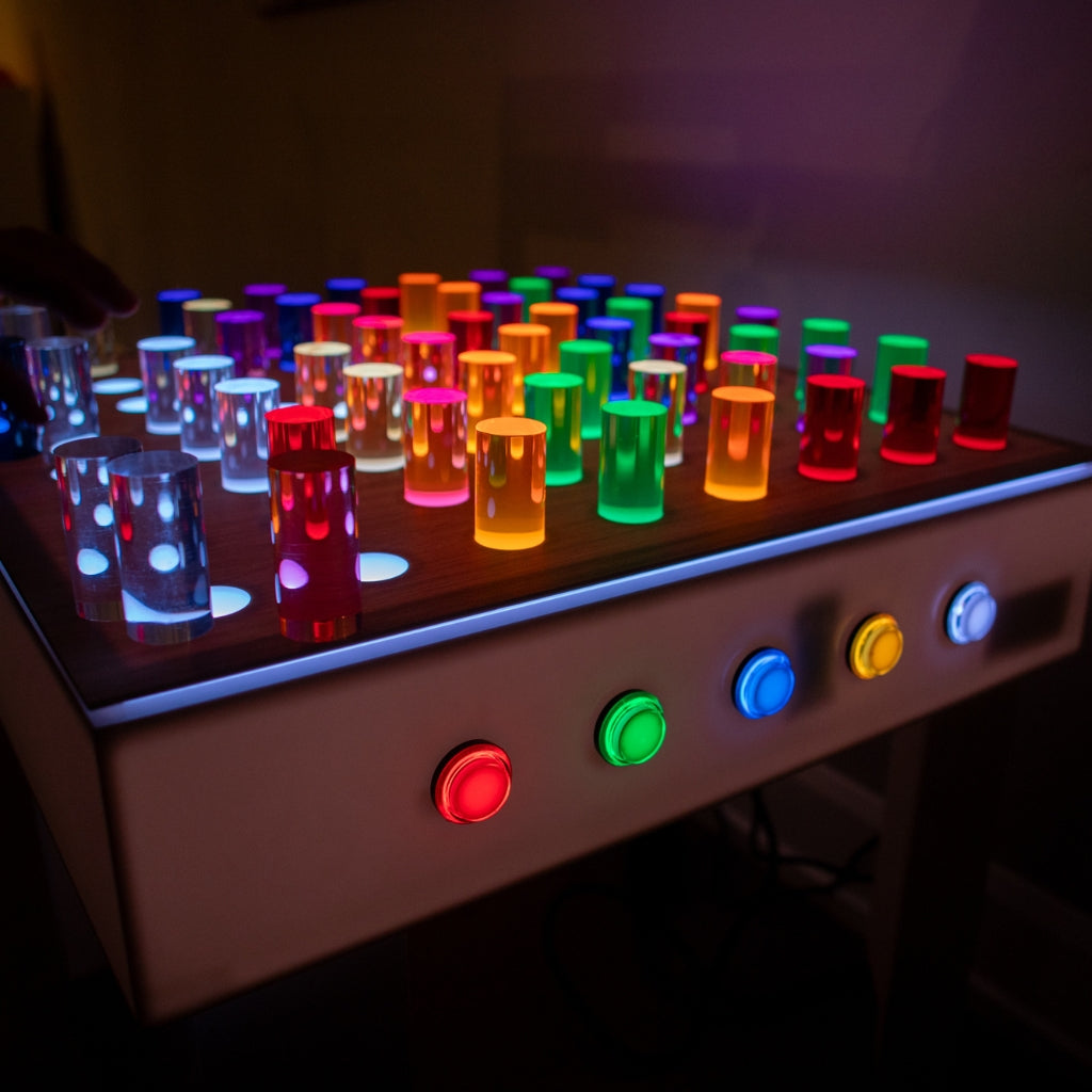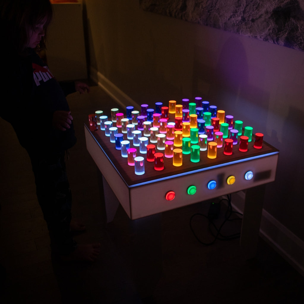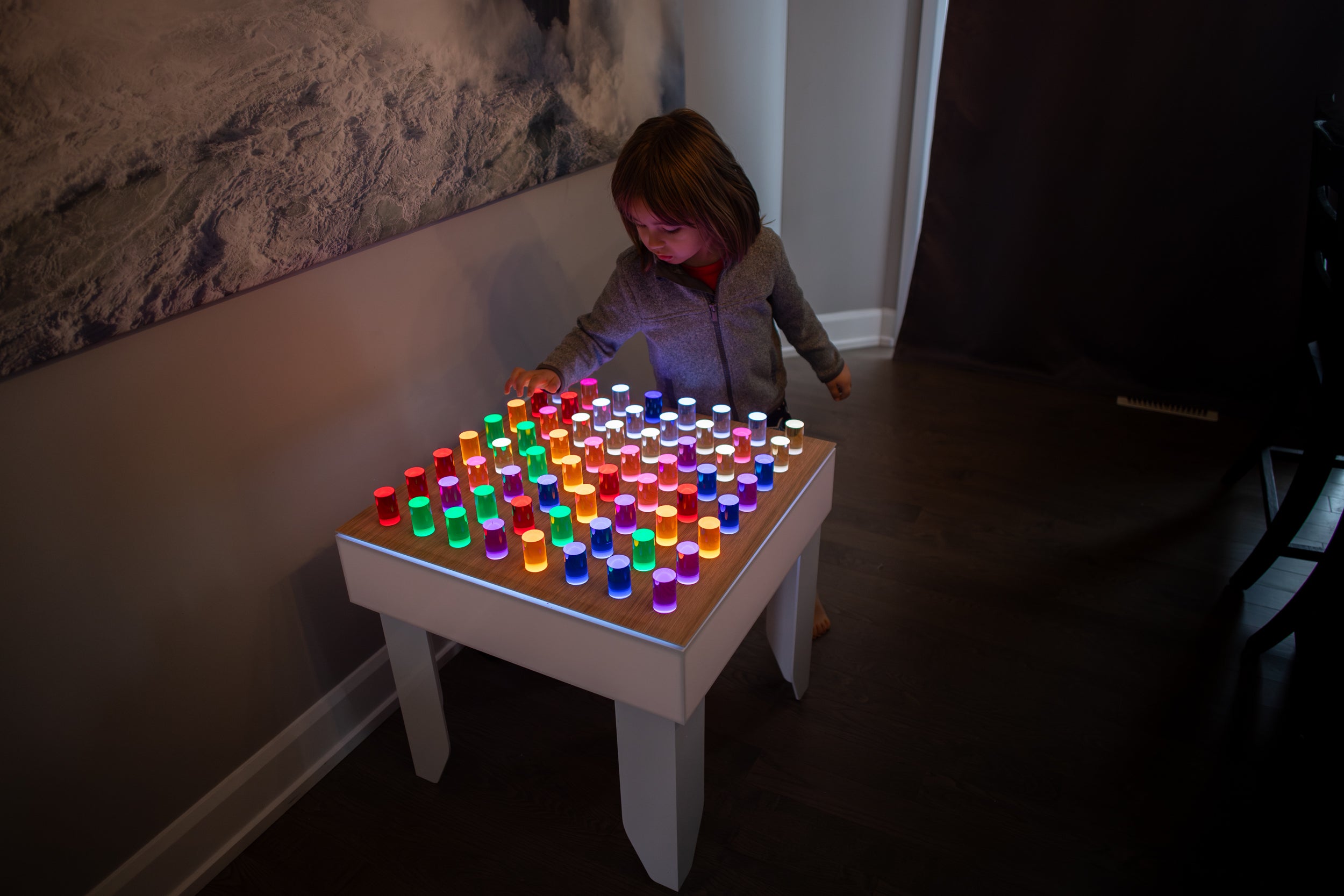 With the touch of a button, the table illuminates in red, green, blue, yellow, or white, allowing caregivers, educators, and therapists to tailor the sensory environment to individual preferences and sensory needs. Whether used for regulation, visual tracking, fine motor development, or open-ended play, Nova™ adapts beautifully to every child.