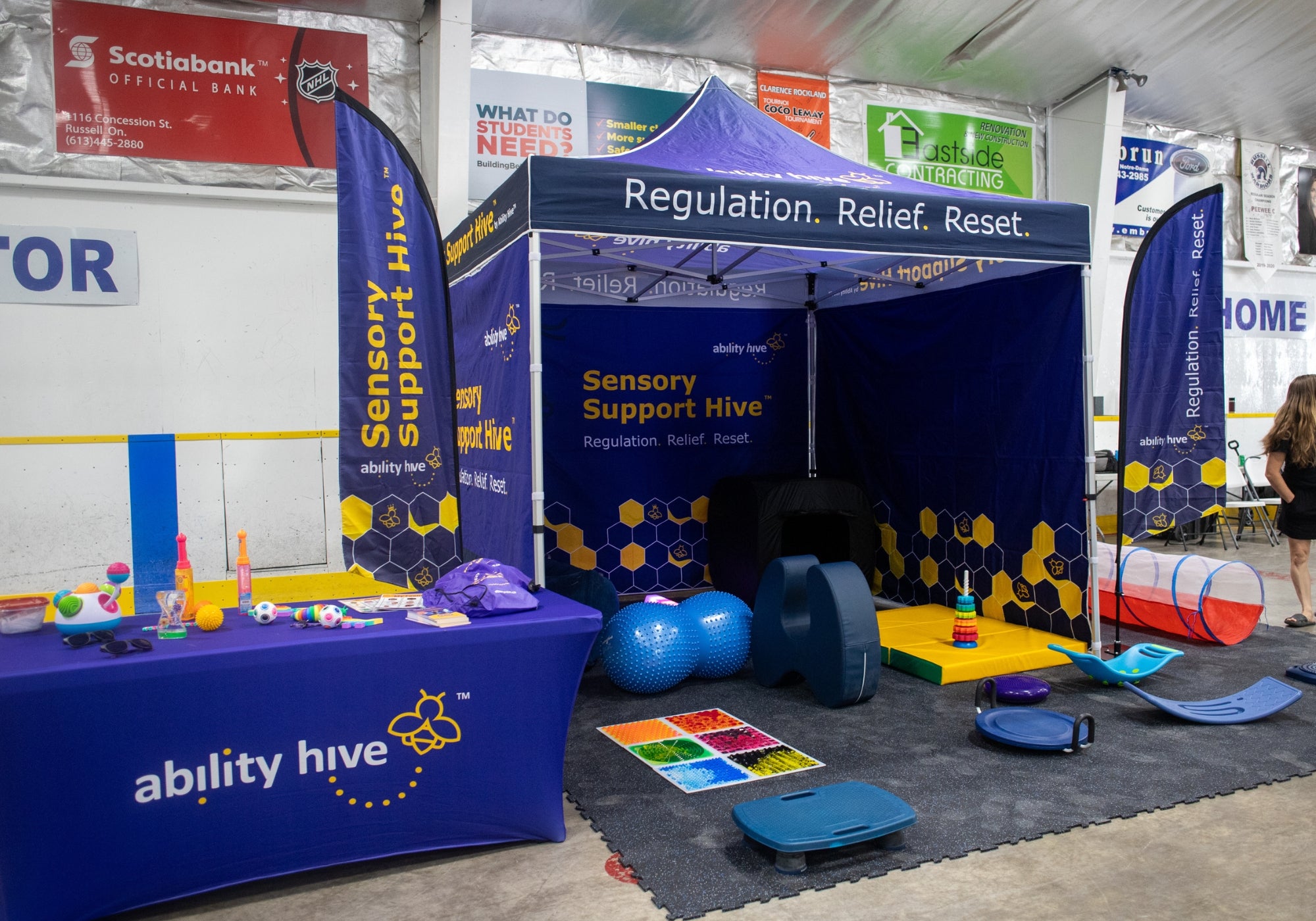 - Professionally branded Ability Hive tent & feather flags