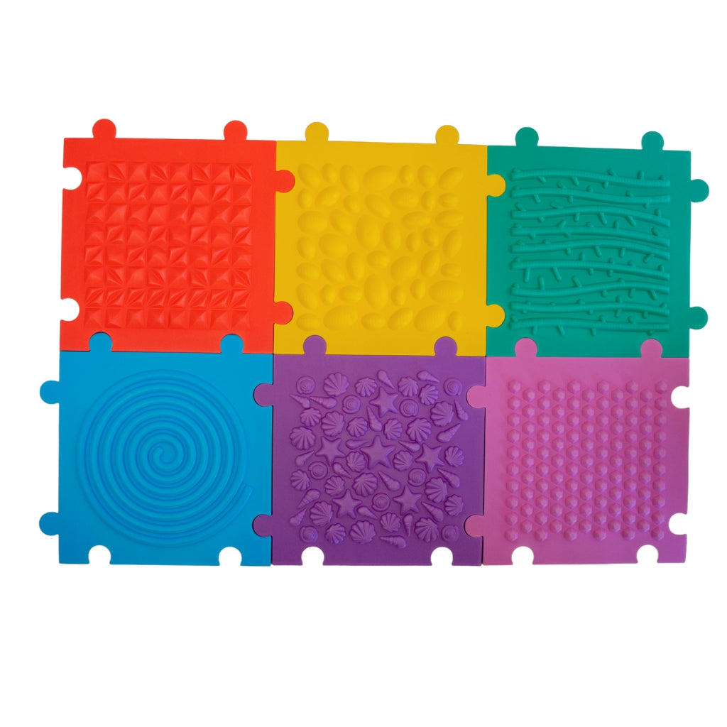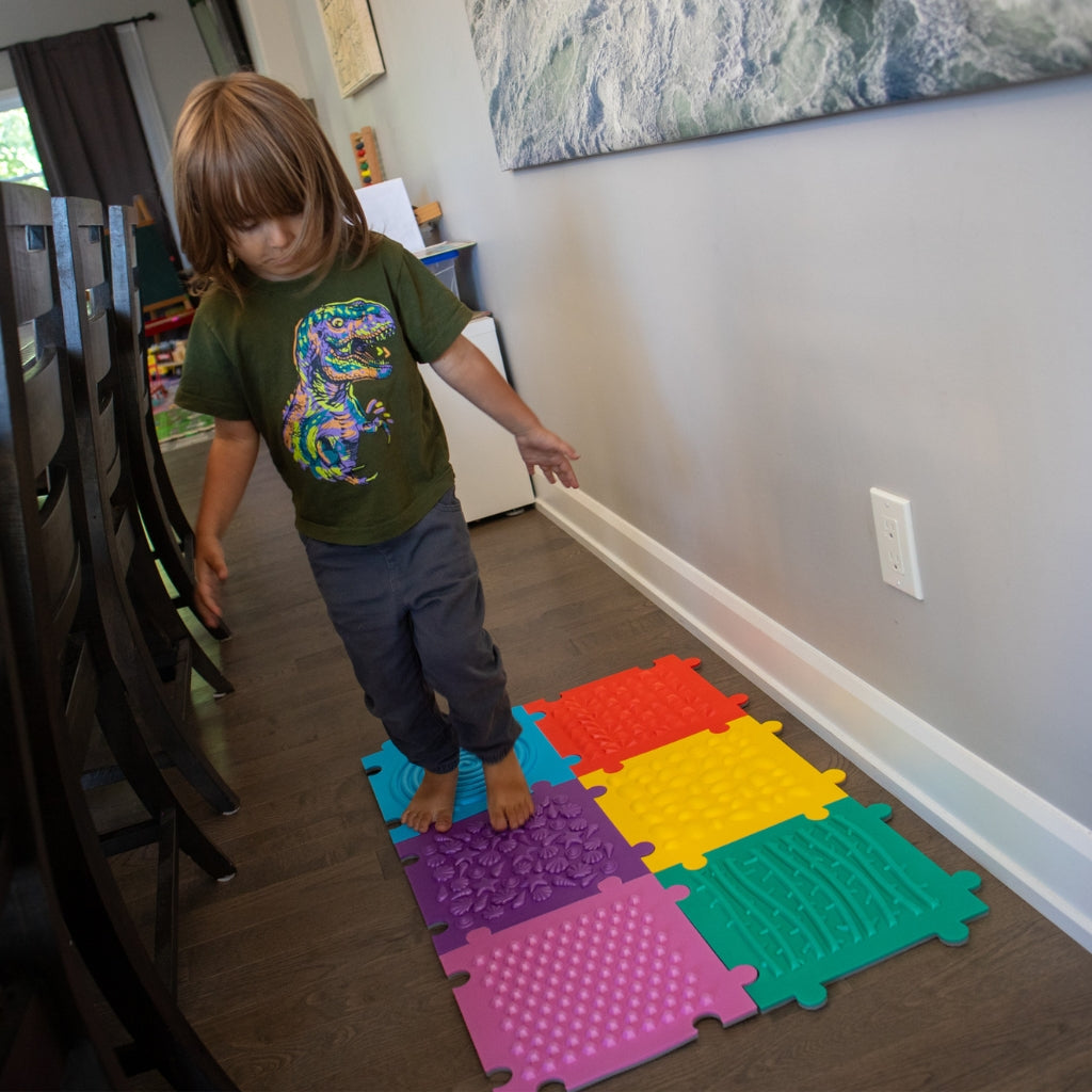 Designed to support sensory integration, balance, and gross motor development, these mats invite children to walk, crawl, or hop across a variety of stimulating surfaces. The anti-slip backing keeps the tiles securely in place, making them safe for both indoor play areas and therapy settings.