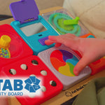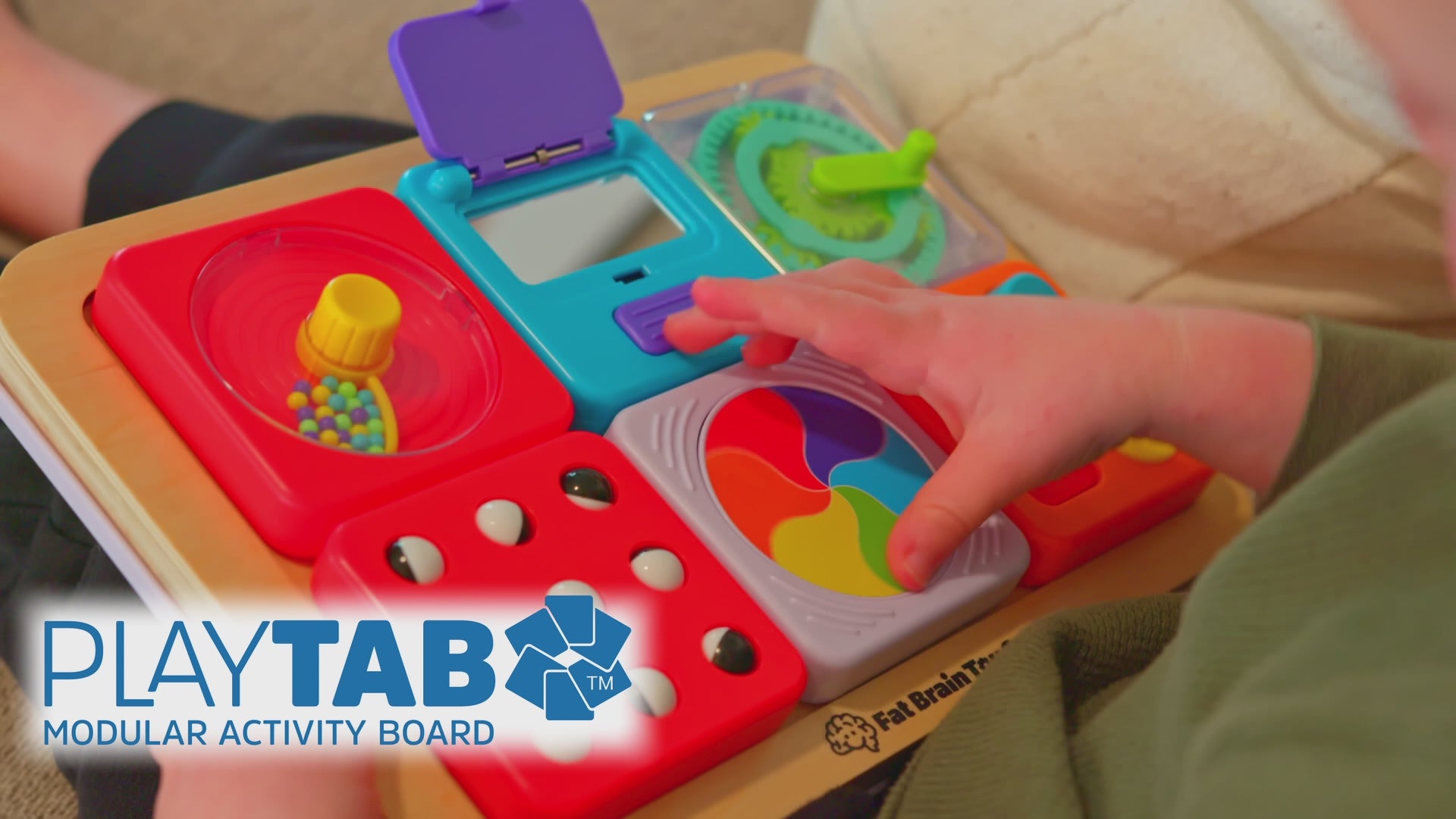 Each tile features a different interactive element, from gears that spin to squeakers that surprise. The tiles magnetically attach to the PlayTab Board (sold separately) or can be used independently—stick them to a fridge, magnetic board, or even bring a few on the go for stroller or car-seat play!