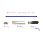 Please note: To turn the unit on, twist the switch tip in *just* until it starts to vibrate. Any further will not increase the vibration, but significant over-tightening (although hard to do), may damage the motor.